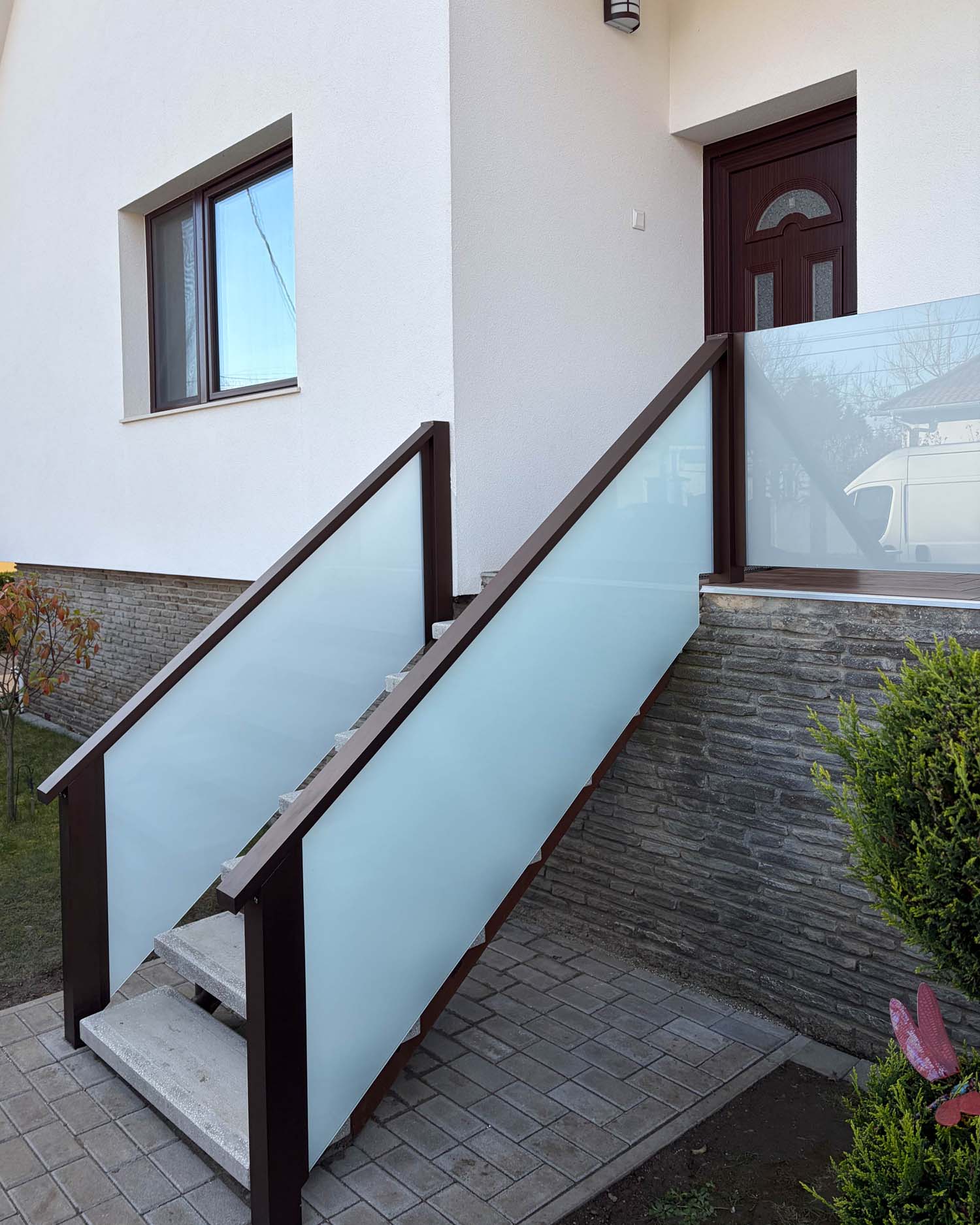 Az üvegkorlátoknál kiemelt fontosságot érdemel a biztonság. Korlátok készülhetnek ragasztott üvegből, edzett üvegből, esetleg ezek kombinációjából. A víztiszta kivitel mellett kérhető rá bármilyen minta, esetleg savmart üvegből is készíthető, de a két üveg közötti biztonsági fólia is lehet matt.