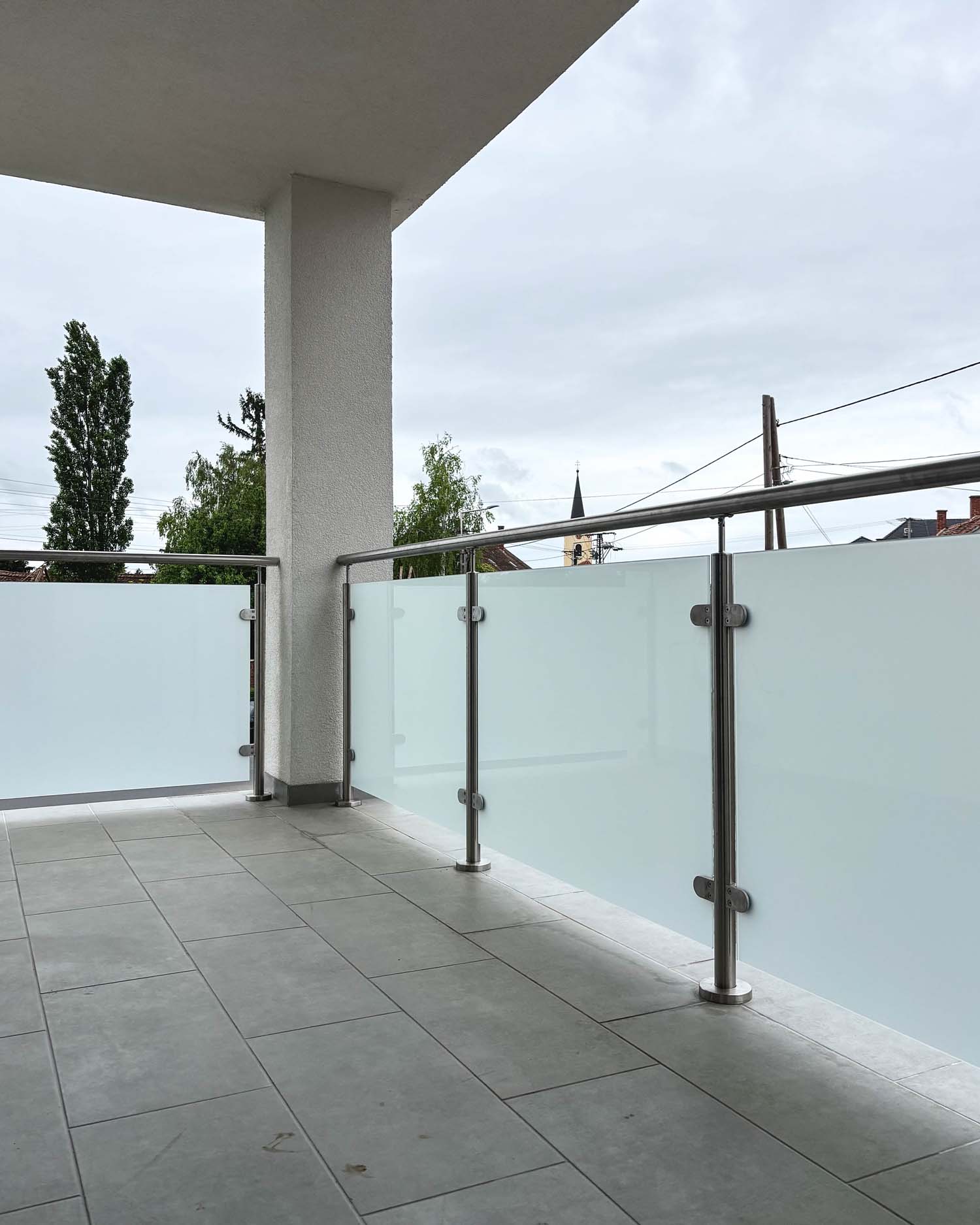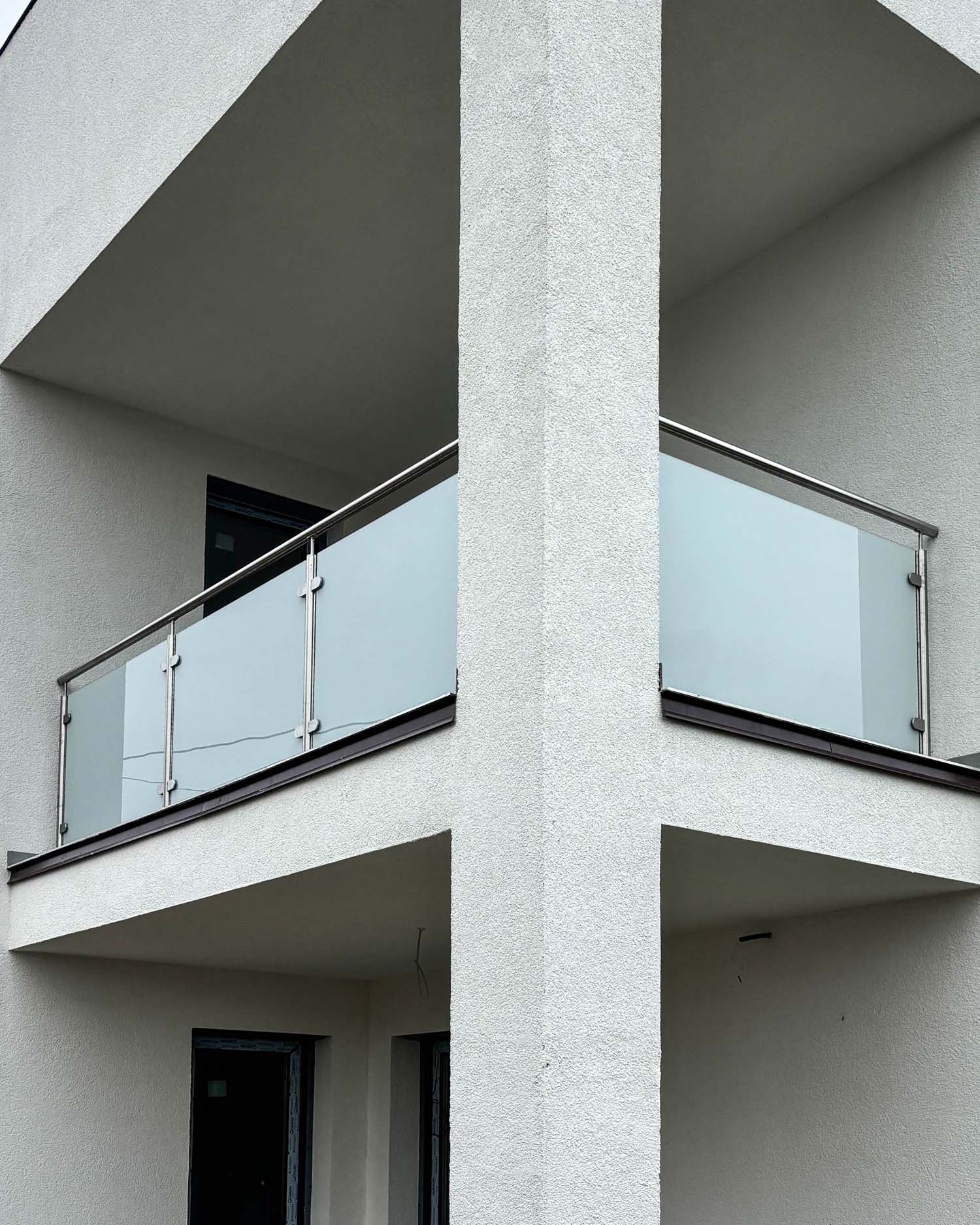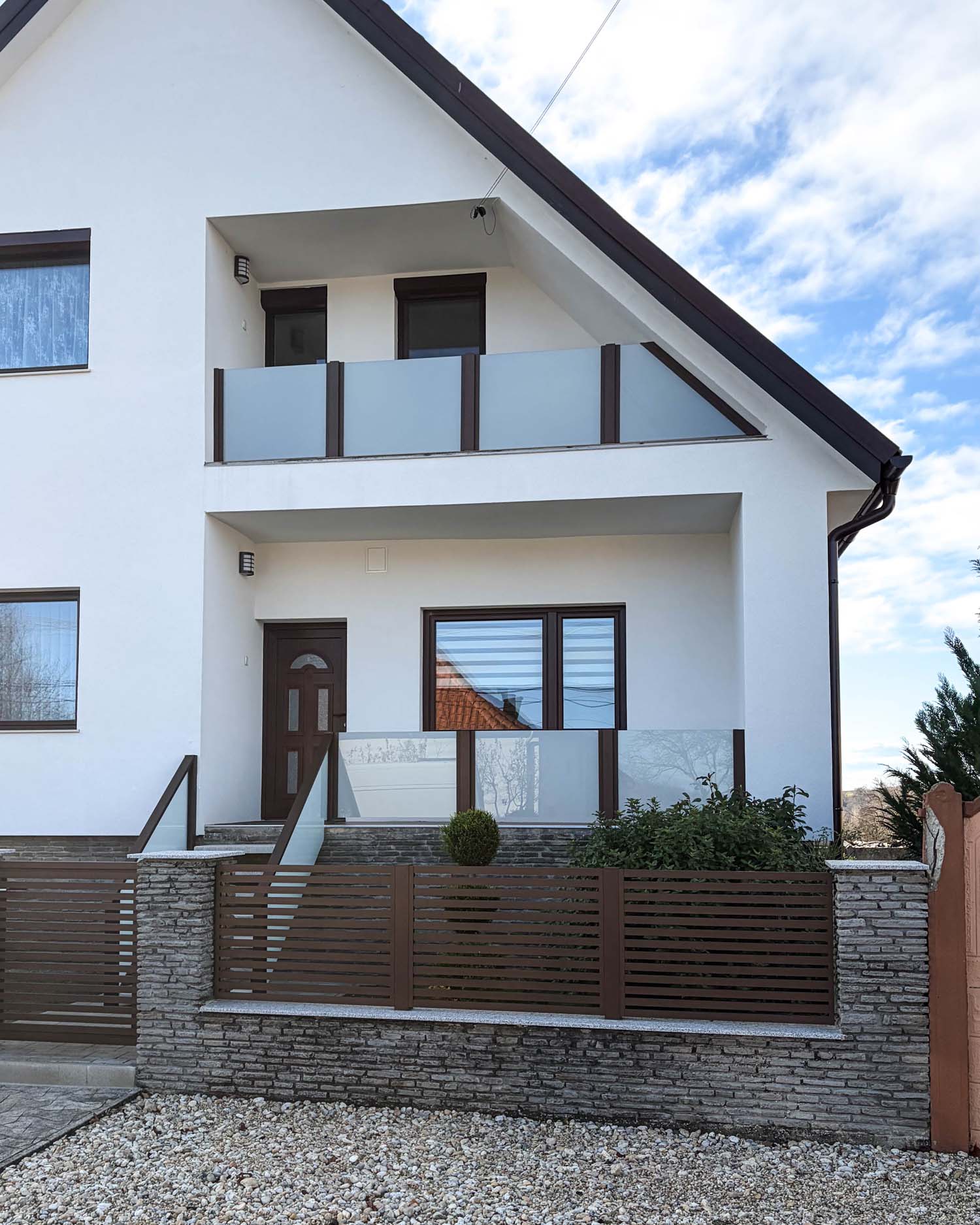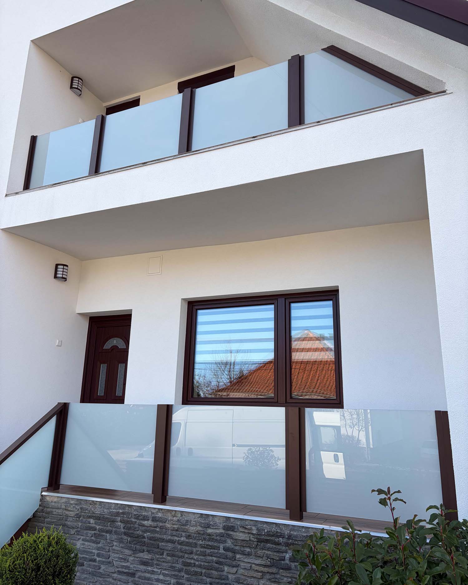 Profilba is rögzíthetjük a korlátot. Ilyen esetben nem látszanak oszlopok, sem korongok. Letisztult, minimál formavilág. Ilyen esetben mindenképp edzett laminált üvegből dolgozunk. Edzett formában ellenáll a hirtelen hőmérsékletváltozásnak, a nyári forró napfénynek, jégesőnek egyaránt.